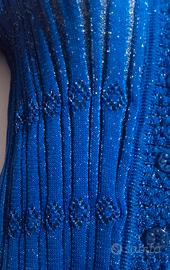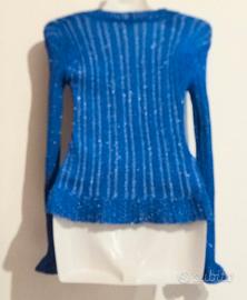 Cardigan blu a maniche lunghe, dal design femminile e molto versatile. Adatto alla mezza stagione. Il tessuto è morbido, super elasticizzato e si adatta bene alla figura senza stringere, garantendo comfort e una vestibilità piacevole. La lavorazione a coste verticali slancia la silhouette, mentre il leggero effetto brillante dona un tocco elegante. Il modello presenta scollatura a V, bottoni decorativi tono su tono e un fondo leggermente svasato, che crea un effetto raffinato e moderno. La taglia è unica. Dettagli: - Colore: blu brillante - Tessuto: molto elasticizzato - Maniche lunghe - Scollatura a V - Bottoni frontali - Fondo leggermente svasato - Condizioni: ottime #cardiganblu #magliaelasticizzata #maglialuminosa #cardiganbleu #mailleélastique #maillebrillante #cardiganazul #jerseyfemenino #tejidoelástico #brilloconestilo #cardiganblau #damenshirt #stretchstoff #glitzeroptik