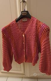 Cardigan rosa lavorazione mista. Lunghezza cm. 56