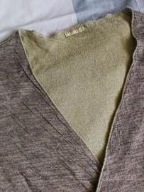 Maglioncino aperto, modello scaldacuore; taglia S; cotone e lana, colore verde salvia/pisello, marca "Almeria" made in italy.