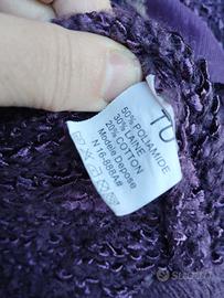 Bellissimo e particolare cardigan/giacca aperta del brand Laetitia Star, color viola intenso melanzana. Un capo dal design unico, perfetto per chi ama lo stile shabby chic, boho-froufrou o romantico.