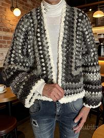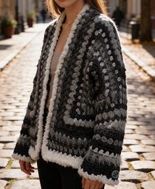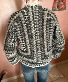 Cardigan fatto all’uncinetto in stile granny, pezzo unico e artigianale.