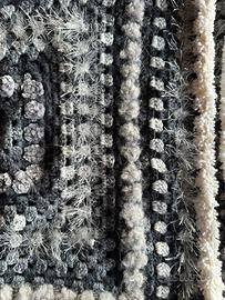 La palette sui toni del grigio, antracite e panna lo rende elegante ma versatile, perfetto per ogni stagione. Ideale da indossare sopra dolcevita, camicie o top basic, si abbina facilmente sia a look casual che a uno stile più boho-chic o urban.