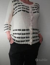 cardigan Tezenis tg XL VESTE 42 44 MASSIMO modello con maniche a tre quarti PER DETTAGLI MODELLO E VESTIBILITÀ GUARDARE FOTO.il colore è bianco e nero