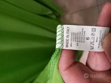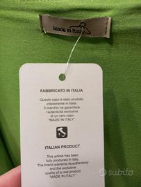 Vendo cardigan di colore verde brillante con bordure in lurex. 95% viscosa, 5% elastam. Nuovo. Taglia unica