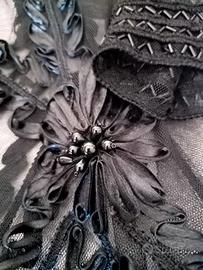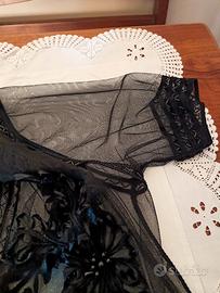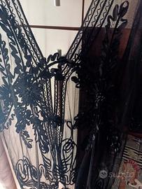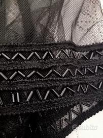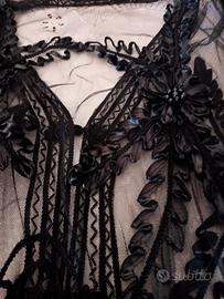 cardigan trasparente nero donna altezza 80 cm con perline e cannetti mai usato