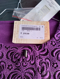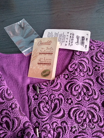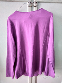 Cardigan color viola 70% lana Merinos 30% seta. Oscalito. Confezionato in Italia