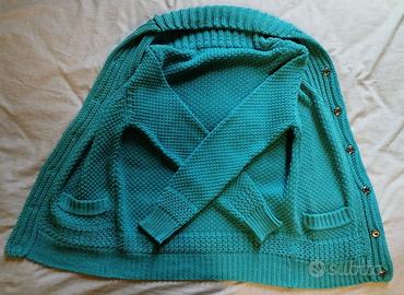 Cardigan Emporio Armani cotone, color turchese, 2 tasche, 6 bottoni a clip, tg. 48, nuovo, mai indossato, vendo.