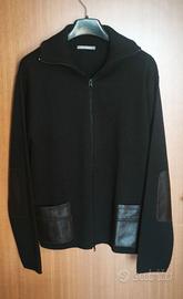 Cardigan da uomo Daniele Alessandrini lana merinos. Tg XL inserti in pelle tasche e gomiti.