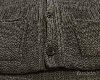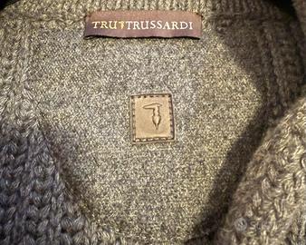 Cardigan Uomo TRU TRUSSARDI Grigio Maglione Lana Pesante Bottoni Vintage Logo