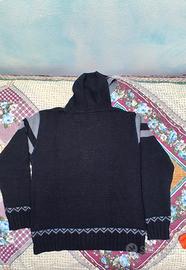 cardigan in misto lana con cappuccio. Chiusura a 6 bottoni. Nero con bordi e intarsi grigi.. -Tg.XL. -Duff Beer -MADEINITALY