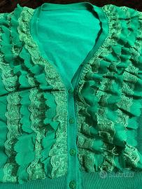 Cardigan verde con applicazioni e 5 bottoncini sul davanti Larghezza spalle 38 cm, lunghezza 46 cm