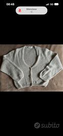 Cardigan vicolo con bottoni gioiello tg.UNICA. Color champagne e fili di lurex ,molto elegante.