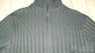 Cardigan vintage marchio Roberto Cavalli, colorazione verde.Cardigan in ottime condizioni e senza sfilettature. Materiali:50% lana;50% acrilico. Taglia M