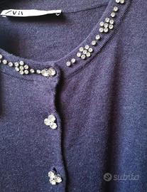 Maglioncino zara color violetto, con dettagli gioiello sullo scollo e bottoni. Taglia M Nuovo, con cartellino