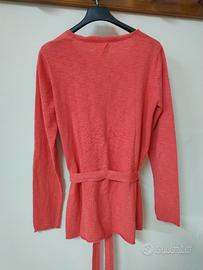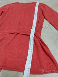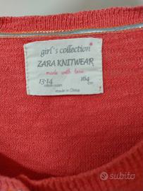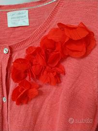Vendo bellissimo cardigan Zara Knitwear (linea Girl's Collection) in un vivace color corallo/pesca. Il capo è impreziosito da applicazioni floreali sulla spalla e bottoncini madreperla. Dettagli: Include la sua cintura in maglia coordinata per regolarlo in vita. Taglia: 13-14 anni (altezza 164 cm). Ottimo anche per una taglia XS da donna. Condizioni: Usato pochissimo, tessuto morbido e senza segni di usura.