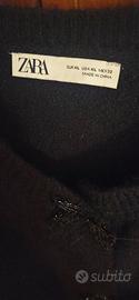 Cardigan Zara tg. XL da donna, nero con bottoni (n.4) e fiocchi, misto lana.