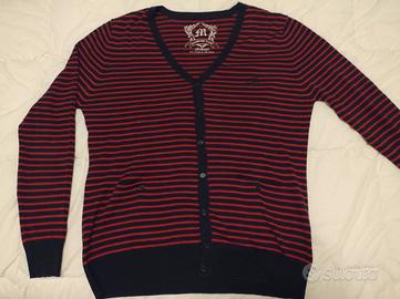 - 1 cardigan a strisce blu/rosse, marca Cedarwood State (Primark UK), taglia M (veste come una M/L), misto cotone/acrilico