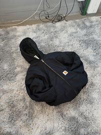Carhartt Active Jacket Black • Tessuto esterno in canvas nero resistente • Fodera trapuntata leggera, adatta a stagioni autunnali/invernali non estreme • Cappuccio regolabile con cordino e zip frontale a tutta lunghezza • Tasche frontali a marsupio e tasca interna sul petto • Polsini e orlo a costine elasticizzate per una chiusura aderente • Etichetta Carhartt cucita sul davanti • Vestibilità bomber fit