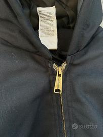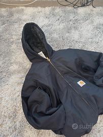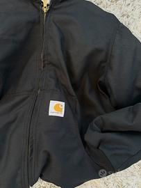Carhartt Active Jacket Black • Tessuto esterno in canvas nero resistente • Fodera trapuntata leggera, adatta a stagioni autunnali/invernali non estreme • Cappuccio regolabile con cordino e zip frontale a tutta lunghezza • Tasche frontali a marsupio e tasca interna sul petto • Polsini e orlo a costine elasticizzate per una chiusura aderente • Etichetta Carhartt cucita sul davanti • Vestibilità bomber fit
