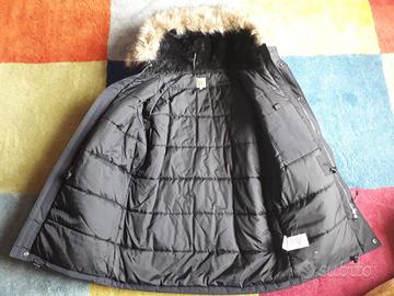Taglia XL Colore: Nero Usato in ottime condizioni Giacca parka di Carhartt in tessuto idrorepellente resinato, con fodera termoisolante, cappuccio regolabile con pelo removibile e fodera in pile. Tasche foderate, chiusura con zip e bottoni e ricamo Carhartt sulla tasca sulla manica sinistra. Tessuto esterno e fodera 100% nylon e imbottitura 100% poliestere.