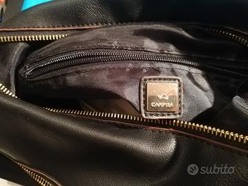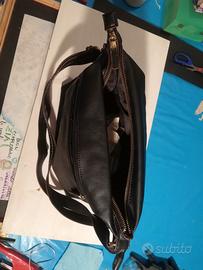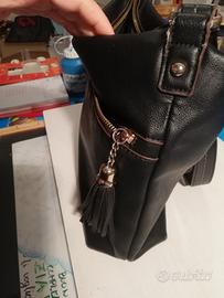 tasca con chiusura a zip e logo lettering. Ha piccoli elementi dorati metallici lucenti. Dotata al suo interno di tasche portaoggetti. Chiusura pratica a zip. TRACOLLA regolabile, per un comodo trasporto cross body. La borsa è rovinata in un piccolo punto come mostra la foto per il resto è perfetta.