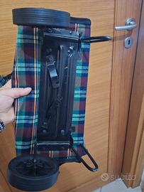 Doppio manico: uno per usarlo come carrello, l’altro per portarlo come borsa/cartella misura esteso : 55 di altezza e 33 di larghezza. ripiegato: altessa 25 larghezza sempre33 cm