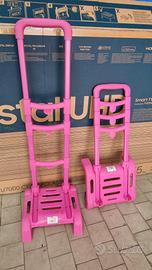 Carrello porta zaino e borse per la scuola e viaggi colore rosa fluo pedana pieghevole manico estensibile ruote in nylon usato in ottime condizioni disponibilità 2 pezzi prezzo di coppia 18€