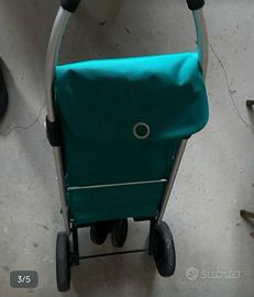 Carrello per la spesa di marca Foppa Pedretti, leggero e maneggevole, struttura in alluminio robuste, ruote tessuto color verde, acqua sfoderabili, chiusura compatta, ritiro a mano