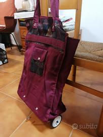 Per inutilizzo vendo carrello per la spesa con zainetto abbinato. Nuovo, mai usato. Chiuso occupa pochissimo spazio(si piegano ruote e supporto) ed è facilmente trasportabile. Buona capienza e tasche esterne zaino e carrello.