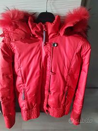 Giubbotto Carrera vintage in vero piumino con bordo cappuccio in pelo vero, colore rosso ottime condizioni come da foto
