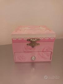 Carillon con ballerina per riporre piccoli gioielli. Dimensioni (chiuso): 8,5 cm di altezza x 10,5 cm di lunghezza x 10,5 cm di larghezza. Funziona perfettamente.