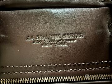 A.G. Spalding Bros Cartella New York in pelle nappata con due zip. Tasca esterna centrale chiusa con zip.Prima tasca centrale con chiusura zip a doppio scorrimento con tasca porta Computer fino a 15/6" + spazio per Penne-Telefono-Biglietti visita.Altra tasca centrale con ampio spazio per documenti A4 con tasca interna. Sul retro tasca chiusa con bottone personalizzato con fond apribile per inserimento Trolley. Tracolla in Nylon con finiture in pelle.