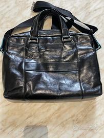 Vendo causa inutilizzo ( mai usata) Cartella per computer 14” e iPad Pro 12,9, con due manici con porta bottiglia e porta ombrello. Pelle nera lucida come da foto con finiture azzurre - interno ora pc con shock absorber - tracolla sganciabile e manici fissi. Misure cm 38.5 x 27 x 8.5 Come si nota dai dettagli delle foto le finiture sono perfette Altre foto e dettagli su richiesta. Eventualmente spedisco in italia