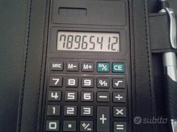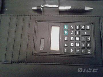Completa di blocco da 33 fogli a righe e calcolatrice a cellule solari a 8 cifre.