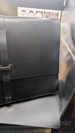Elegante cartella Gucci vintage in pelle nera, modello professionale slim, con chiusura frontale a barra metallica firmata Gucci.
