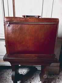cartella per professionisti DI BERARDINO, in pregiata pelle, brown. 2 ampi vani interni rivestiti in pelle per fascicoli e portatile oltre a smartphone e carte. altro vano con zip posteriore