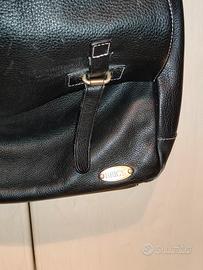 cartella messenger in pelle nera in buone condizioni. piccolo segno di usura ben visibile in foto. si vede solo quando si apre