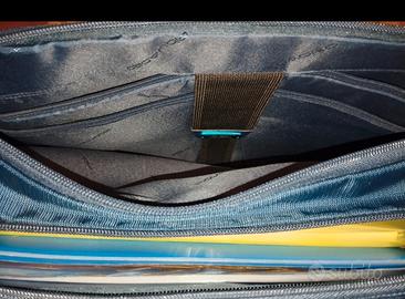 Cartella Piquadro usata un paio di volte. Cartella 15″ in pelle di vacchetta e tessuto. Nuova costa 240€. Nota: usata solo due (2) volte