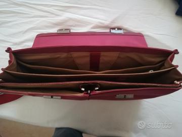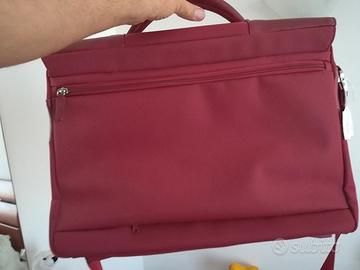 Cartella lavoro PIQUADRO unisex, in pelle e cordura amaranto, con tracolla staccabile, vendo. Borsa porta pc messenger 2 grandi scomparti con chiusura a cerniera, 2 taschine interne organizzate + 2 tasche grandi frontali a soffietto + 1 tasca grande posteriore con cerniera. Misure: larghezza 45 cm, altezza 33 cm., profondità 13 cm. Non presenta segni di usura.