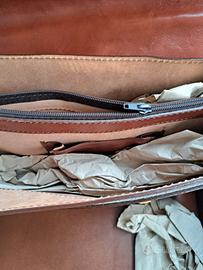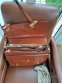 Vendo cartella da lavoro in vera pelle, stile classico/vintage, ideale per ufficio, professionisti o utilizzo quotidiano. Caratteristiche: ✅ Vera pelle colore marrone/cuoio ✅ Stile elegante e professionale ✅ Tracolla regolabile + manico superiore ✅ Più scomparti interni per documenti, PC o tablet ✅ Tasca interna con chiusura a zip ✅ Chiusure e dettagli in metallo dorato ✅ Struttura robusta e capiente 📌 Condizioni: Usata pochissimo, in ottimo stato, normali segni di utilizzo che valorizzano lo stile vintage (vedi foto).