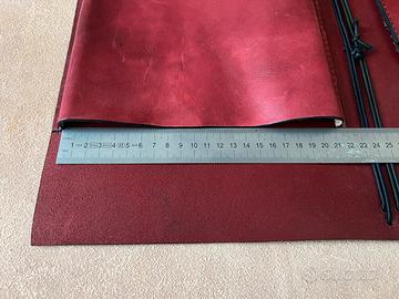 Vendo cartella porta documenti fatta a mano. Slot per biglietti da visita e documenti, elastici per notebook e tasca per tablet (larghezza interna 21 cm). Esterno in cuoio vecchio, tasche interne in pelle toscana conciata al vegetale. Cucito a mano.