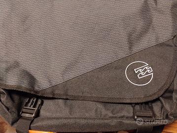 Cartella porta pc con tracolla marca Billabong mai usata o forse usata 1 volta. ATTENZIONE siccome in questo modello non ci sono tasche con zip (per mouse, alimentatore, chiavi ecc) ho aggiunto una tasca proveniente da una vecchia borsa di altra marca. Se tale tasca aggiuntiva non è gradita, è facile eliminarla tagliando la mia cucitura. Misura circa 43 cm x 33