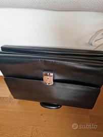 Vendesicartella portadocumenti originale PINEIDER 1774 in pelle naturale liscia, colore nero, tre soffietti provvista di certificazione originale di autenticità.