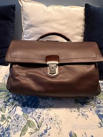 In pelle con tracolla e 3 comparti + uno sulla parte posteriore. Regalo mai utilizzato. Pari al nuovo