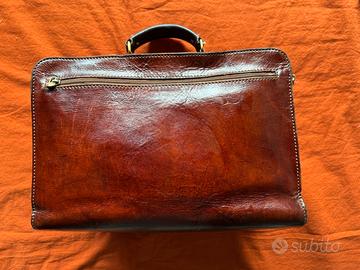 Vendo cartella in pelle The Bridge (originale) con tracolla due tasche sporgenti esterne, cinghie portaombrello, tasca a scomparsa con cerniera sul retro, due scomparti interni con cerniere dedicate.