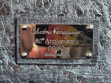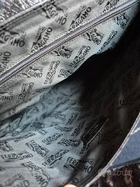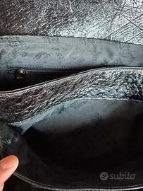 Cartella uomo originale Salvatore Ferragamo, in pelle di Struzzo , nera , con tracolla regolabile, interno a due scomparti e tasca con zip. usata pochissimo, come nuova . misura 33x33x8 cm.