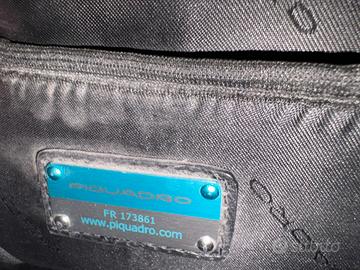 Cartella valigetta PIQUADRO nera tessuto/pelle in ottime condizioni sia internamente che esternamente, con chiusura principale a scatto, dotata di moltissime tasche con chiusura a zip, tre scomparti principali ed altri secondari per una organizzazione eccellente, manico comodissimo sempre in pelle di altissima qualità.