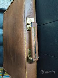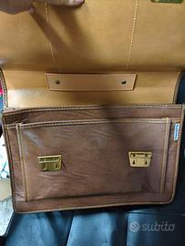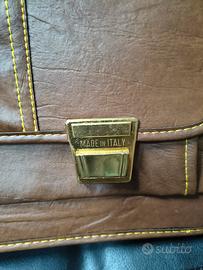 cartella vintage in pelle marrone con doppia chius