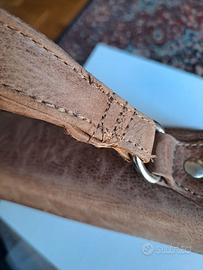 Cartella uomo della prestigiosa ditta Zanellato in cuoio invecchiato interamente foderata in pelle scamosciata composta da tre scomparti,2 tasche con cerniera