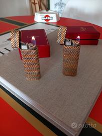 splendida coppia di accendini Cartier in oro intrecciato 18 carati. Comprati nel 1973, perfettamente funzionanti. uno dei due ha ancora la garanzia dell'epoca, l'altro è stato tagliandato completamente a novembre 2024. Tutto documentabile. Sono bellissimi . Nel prezzo non sono comprese le spese di spedizione.